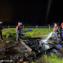 Um kurz nach 18 Uhr hieß es: Feuer in einer Zimmerei im Carl-Benz Ring in Lich! Auf der Anfahrt wurde bekanntgegeben, dass noch insgesamt drei Personen im Gebäude vermisst waren. Am Einsatzort angekommen, wurde ein Löschangriff aufgebaut und zwei Trupps gingen mit Übungsattrappen unter Atemschutz in das Gebäude vor, um nach den vermissten Personen zu suchen und eine Innenbrandbekämpfung durchzuführen. Zeitgleich wurde von zwei weiteren Trupps eine Außenbrandbekämpfung eingeleitet und eine Riegelstellung zu einem angrenzenden Gebäude aufgebaut, um ein Überschlagen der Flammen zu verhindern.